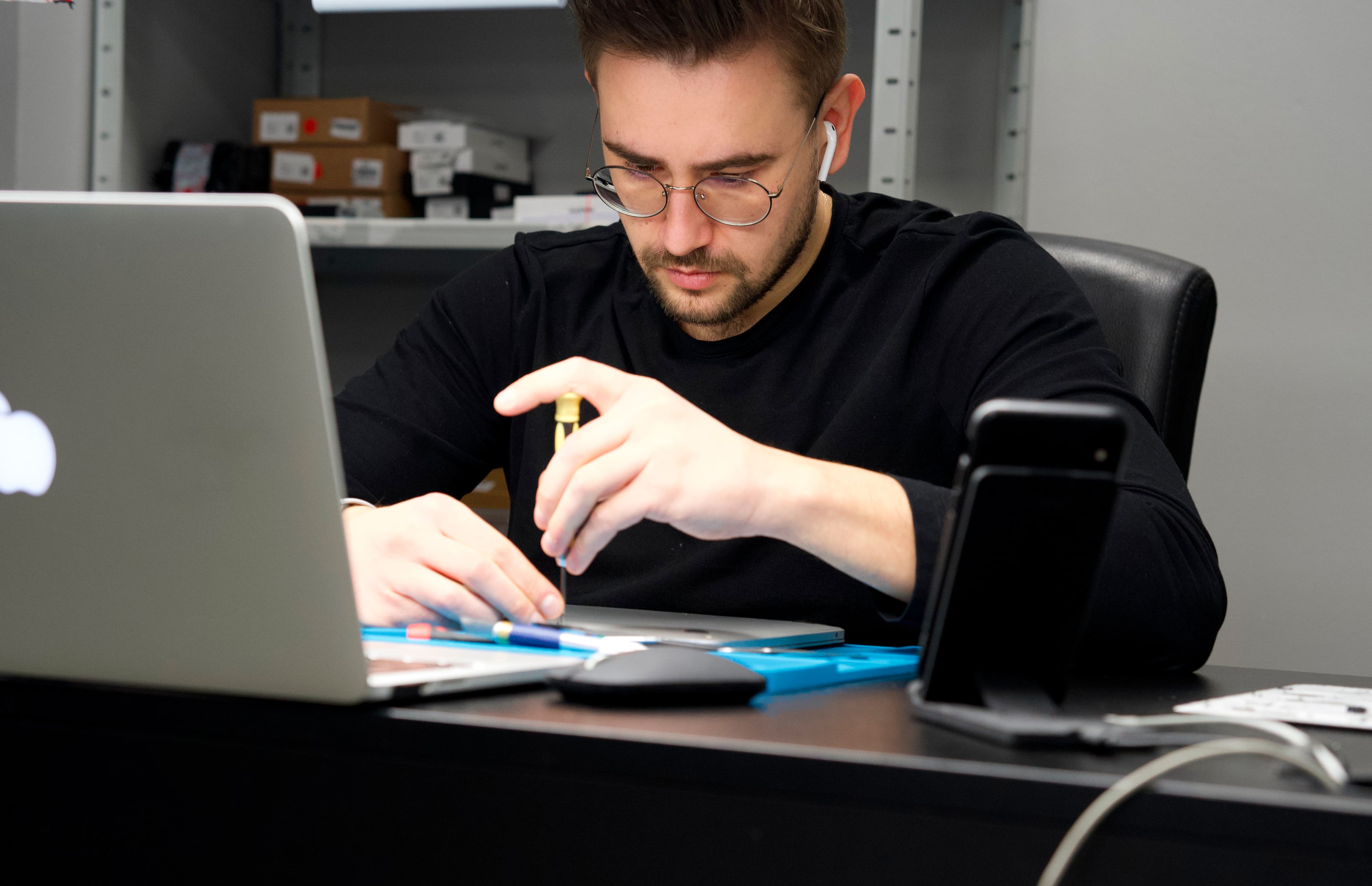 Мы имеем собственный склад с более чем 3 000 запчастями, что позволяет нам оперативно приступать к ремонту. Мы не заставляем клиентов ждать поступления запчастей – ремонт начинается сразу после диагностики устройства.